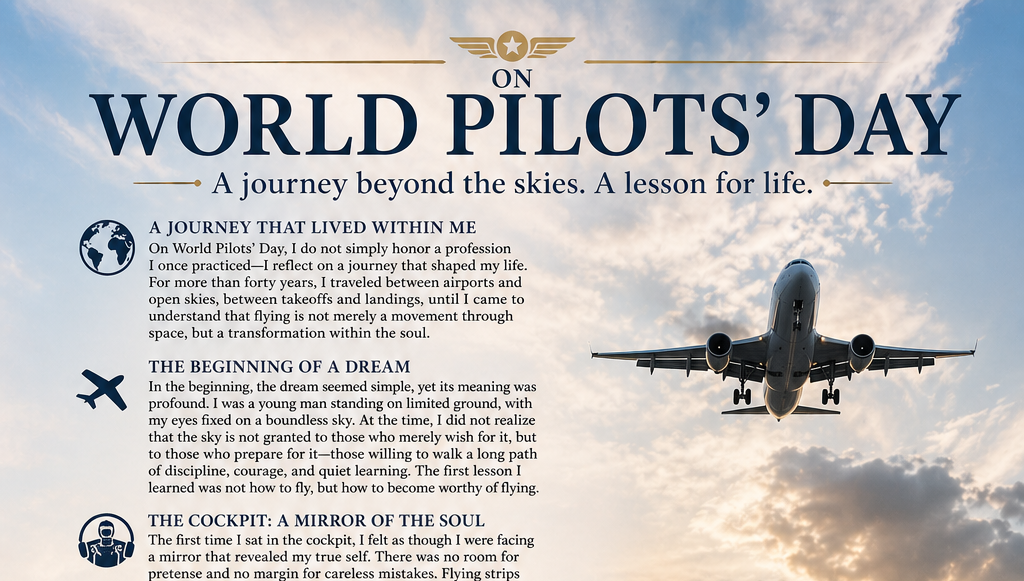 On World Pilots’ Day, I do not simply honor a profession I once practiced—I reflect on a journey that shaped my life. For more than forty years, I traveled between airports and open skies, between takeoffs and landings, until I came to understand that flying is not merely a movement through space, but a transformation within the soul.
